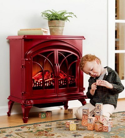 Buy Cheap Portable Woodburning-Style Large Electric Stove with Stay-Cool Surface in Red Best deal