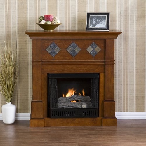 Traditional craftsmanship and an elegant walnut finish combine to create the ideal home accent. Complete with decorative trim and faux slate tiles you are sure to enjoy the presence of this fireplace. Portability and ease of assembly are just two of the reasons why our fireplace mantels are perfect for your home. Requiring no electrician or contractor for insHation allows instant remodeling without the usual mess or expense. In addition to your living room or bedroom, try moving this fireplace to your dining room for romantic dinners or compliment your media room with a ventless fireplace below your flat screen television. Use this great functional fireplace to make your home a more welcoming environment.
