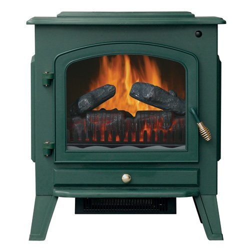 The Stonegate SH-NDF17-GR electric fireplace stove provides clean electric heat with the look of authentic burning wood. It is a freestanding metal hearth designed compactly to fit in any room, and comes in an attractive green color to match your decor.